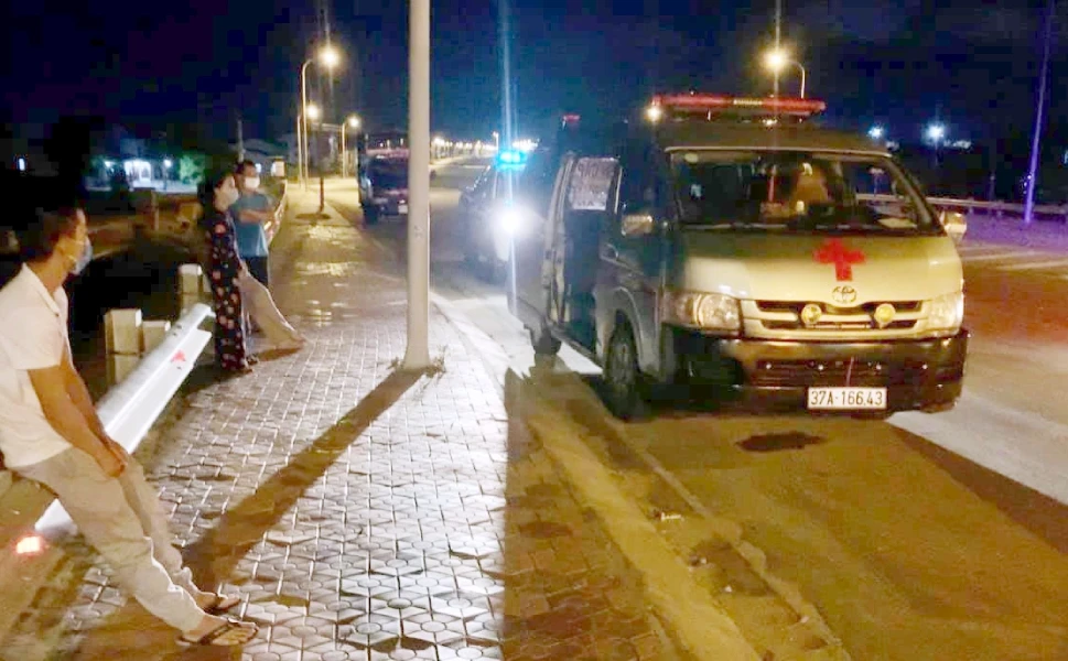 Tối 28-8, chiếc xe cứu thương 37A-166.43, chạy từ TP Vinh theo hướng về huyện Thanh Chương (Nghệ An).