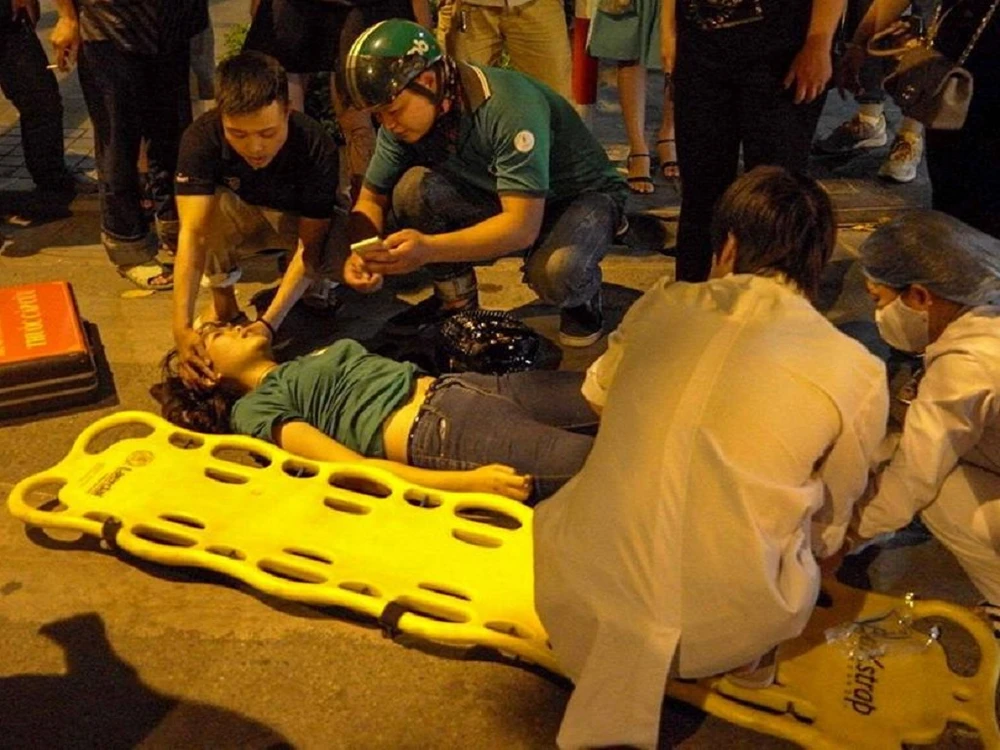 Khoảng năm phút sau đó, từ thông tin của người dân, xe cấp cứu 115 Hà Nội có mặt đưa nạn nhân vào BV Việt Đức cấp cứu.