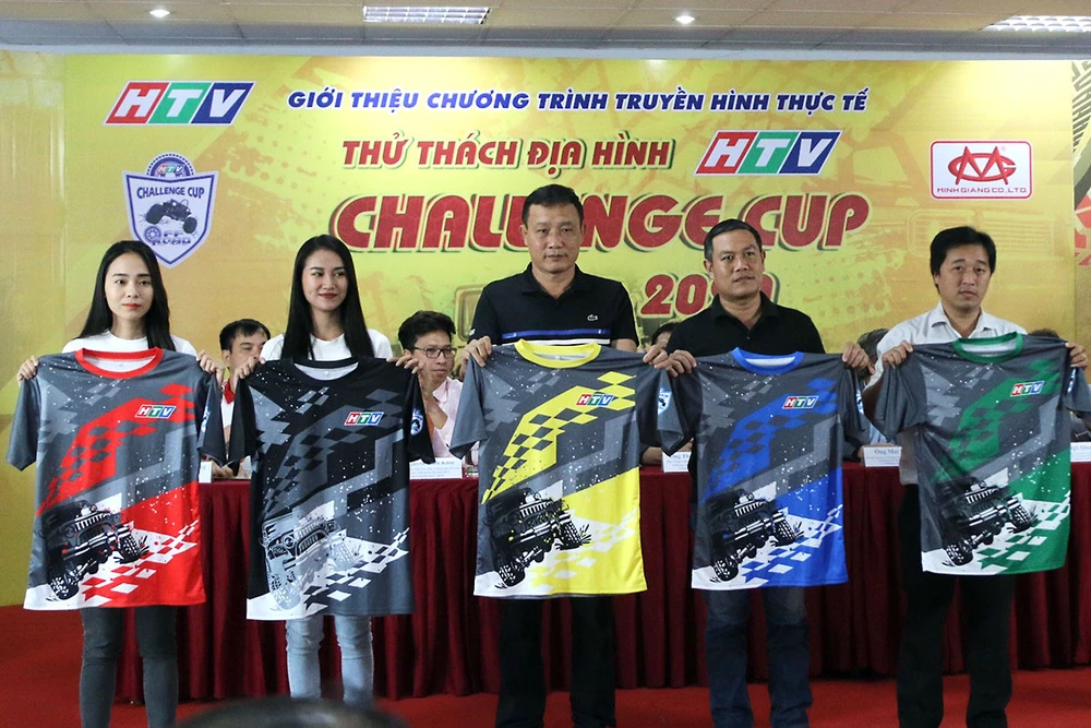 Các VĐV đua xe đạp, mô tô và ô tô địa hình giới thiệu bộ áo đấu nhận diện HTV Chalenge Cup 2020. Ảnh: MQ