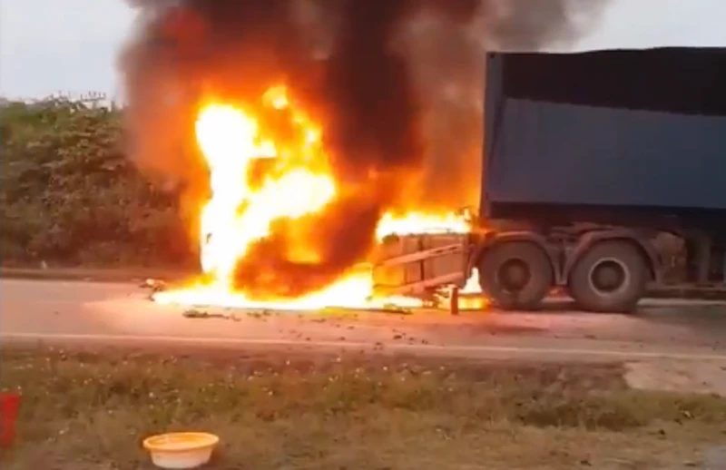 Vào thời điểm nêu trên, xe đầu kéo 15C- 244.68 chạy hướng Hà Tĩnh-Hà Nội bất ngờ bốc cháy từ khoang cabin. Lúc này, tài xế kịp dừng xe, nhảy xuống đường.