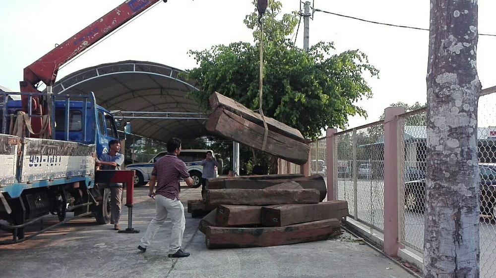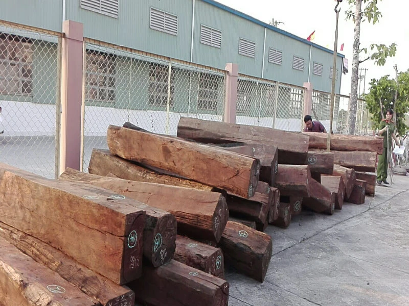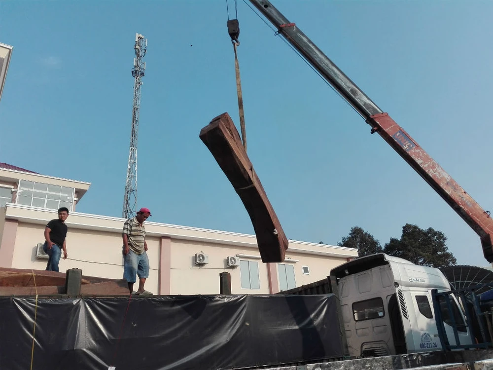 Gỗ căm xe được hạ tải để kiểm kê số lượng