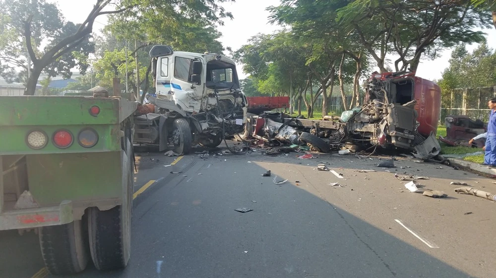 Ngày 9-10, trên tuyến đường D2, KCN Phú Mỹ 1, thị xã Phú Mỹ, Bà Rịa- Vũng Tàu (đoạn trước cổng Công ty CP Dầu khí V-Gas) xảy ra một vụ tai nạn giao thông giữa hai xe đầu kéo, làm hai xe hư hỏng nặng.