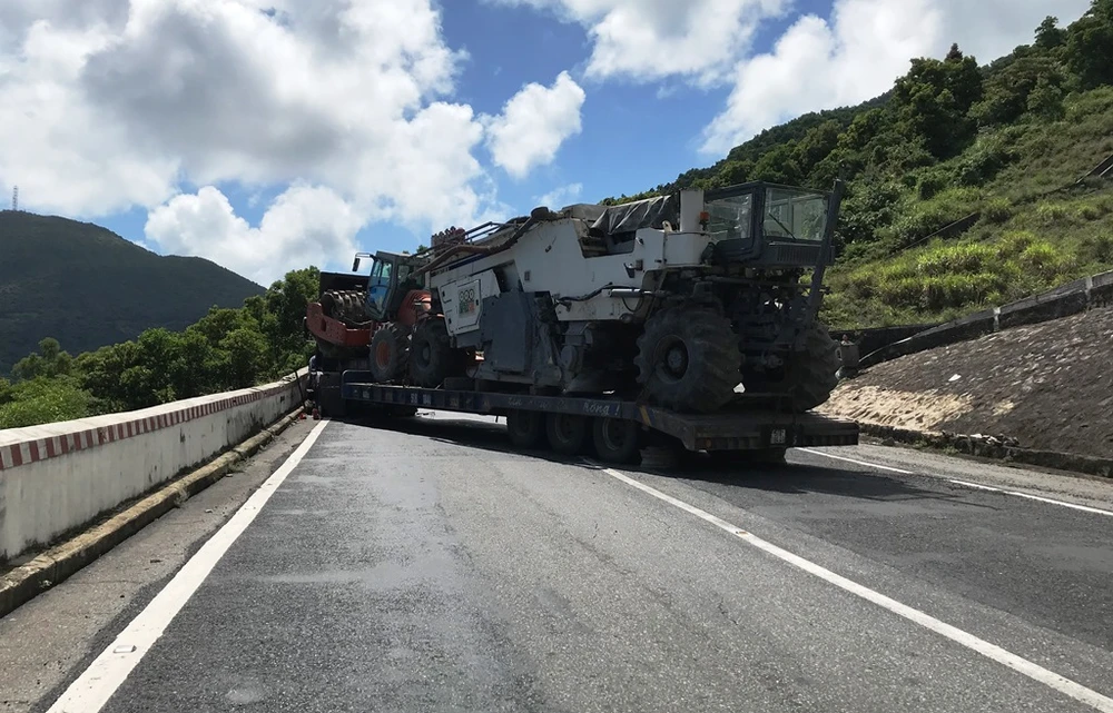 Thông tin ban đầu, khoảng 9 giờ 30 ngày 21-9, xe đầu kéo 73C-073.90 chạy trên đèo Hải Vân theo hướng Bắc - Nam chở trên rơmoóc cần cẩu nặng gần 60 tấn. Khi qua khúc cua cùi chỏ thuộc thị trấn Lăng Cô (huyện Phú Lộc, Thừa Thiên-Huế) thì bị sự cố khiến đuôi rơmooc kẹt cứng dưới mặt đường.