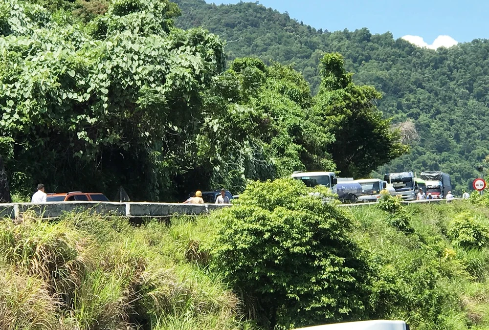 Sự cố khiến xe không thể tiếp tục đi chuyển được và nằm chắn ngang giữa đường. Hàng trăm xe qua đèo mắc kẹt, xếp hàng dài. Nhiều xe khách du lịch trên đèo Hải Vân phải quay đầu đi hướng khác.