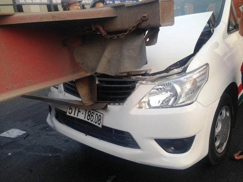 Sáng 16-3, xe đầu kéo 57K-7763 chạy trên xa lộ Hà Nội theo hướng ngã tư Thủ Đức về cầu Sài Gòn. Khi đến gần ngã tư Bình Thái (phường Trường Thọ, quận Thủ Đức, TP.HCM) thì đâm vào đuôi taxi bảy chỗ đang dừng chờ đèn đỏ.