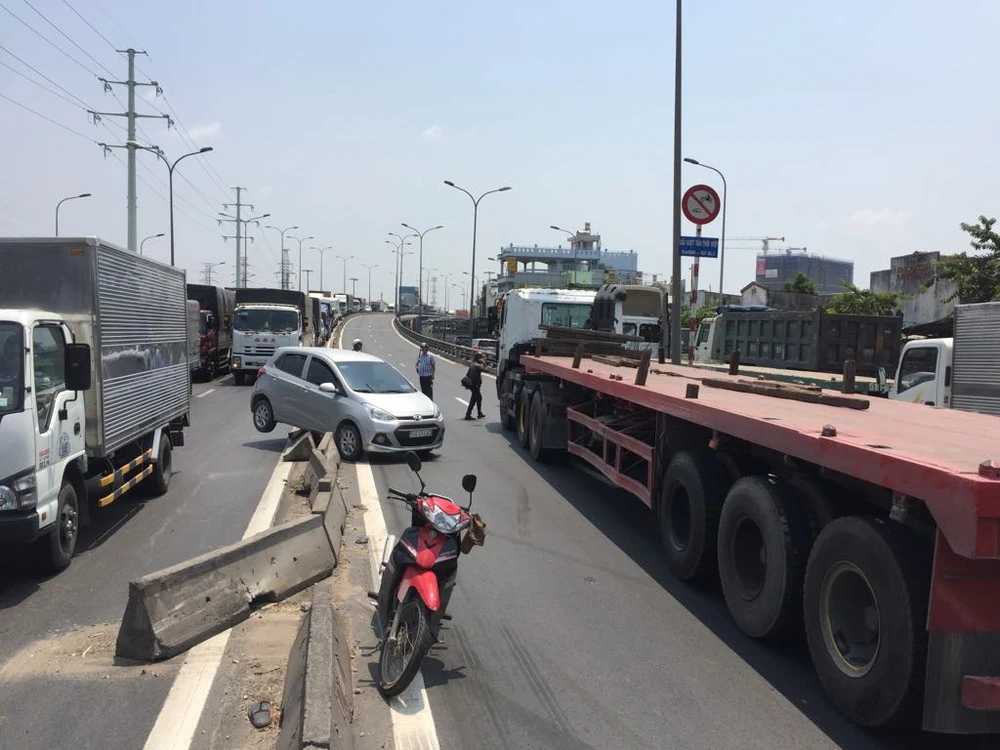 Trưa 11-4, trên quốc lộ 1 đoạn qua địa bàn quận 12 xảy ra vụ chạm giữa xe đầu kéo và ô tô con khiến nhiều người hốt hoảng, giao thông ùn tắc hơn 2 giờ.