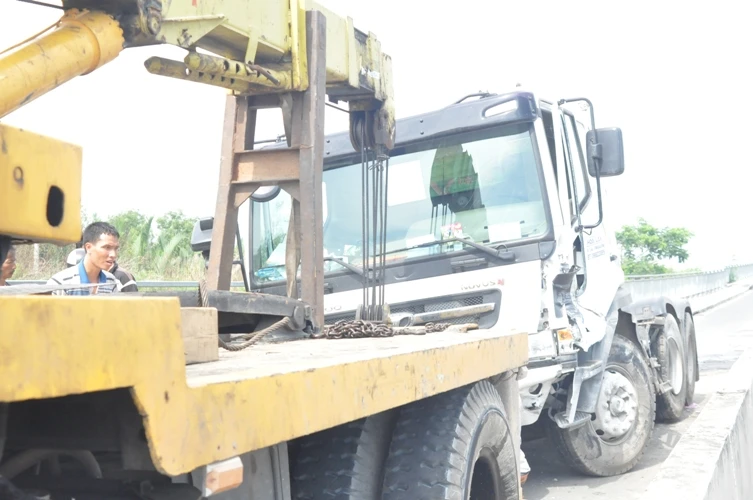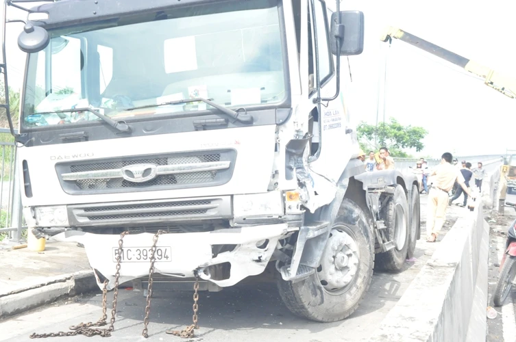 Tại hiện trường, xe đầu kéo bị hư hại khá nặng. Phần cầu trước của xe bị gãy, ba bánh xe bị nổ tung và rất nhiều chỗ móp méo hư hỏng nghiêm trọng do vụ va chạm mạnh với dải phân cách. Xe đầu kéo năm hoàn toàn bên làn đường dành cho xe máy. Bốn cục bê tông để làm dải phân cách bị bể nát, hư hỏng nặng.