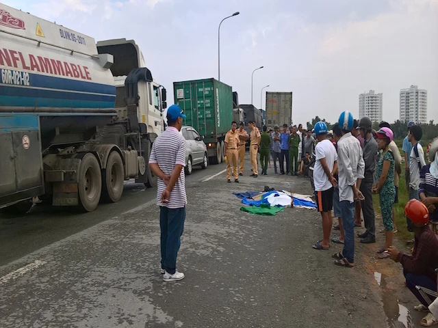 Cú va chạm mạnh khiến hai người ngồi trên xe máy ngã xuống đường, một nam thanh niên bị bánh xe cán qua người, tử vong tại chỗ, người còn lại bị thương nặng được người dân đưa đi cấp cứu ngay sau đó.