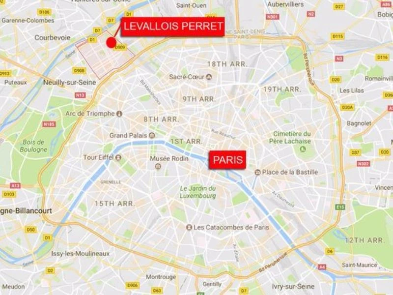 Vị trí thị trấn Levallois-Perret ở ngoại ô Paris. Ảnh: GOOGLE MAPS