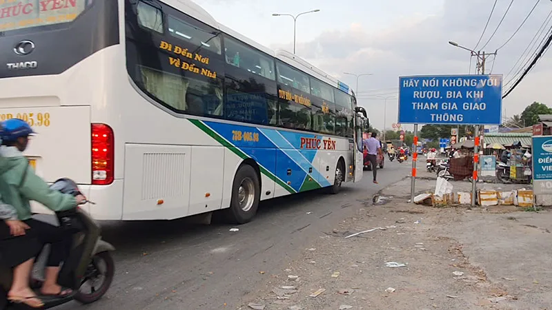 16 giờ 28 cùng ngày, chúng tôi ghi nhận xe khách biển số 51B-277.83 tấp vào đoạn đường trước cây xăng. Tuy nhiên, chiếc xe lại dừng ở giữa làn đường xe máy. Sau đó tài xế mở cửa cho phụ xe bước xuống, rảo bước mời hành khách đi xe.