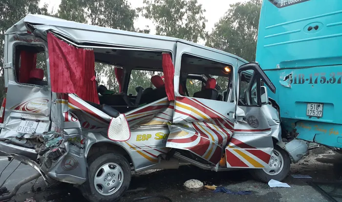 Cùng lúc đó, xe ô tô tải Hòa Tâm mang BKS 86C-058.10 chạy nhanh cùng chiều, không kịp thắng đã đâm mạnh vào đuôi xe khách. Cú đâm mạnh khiến xe tải đẩy xe khách 18B-016.30 lao lên đâm vào sau xe khách mang BKS 51B-175.37 do tài xế Lê Văn Hiệp (41 tuổi, trú TP.HCM) điều khiển đang dừng đèn đỏ phía trước. Cú đâm khiến xe khách 51B-175.37 trượt bánh 5 m tại ngã tư.