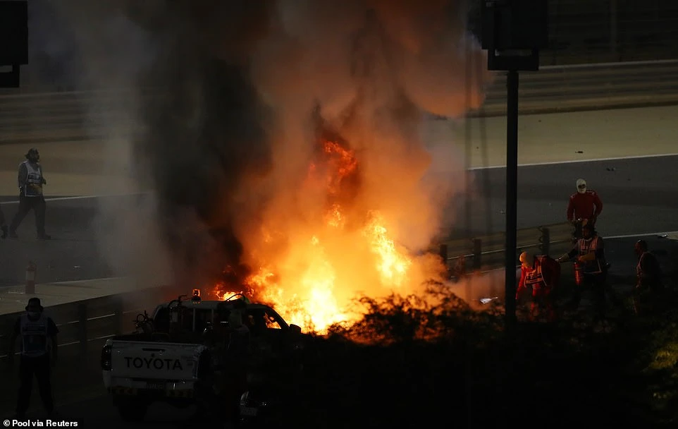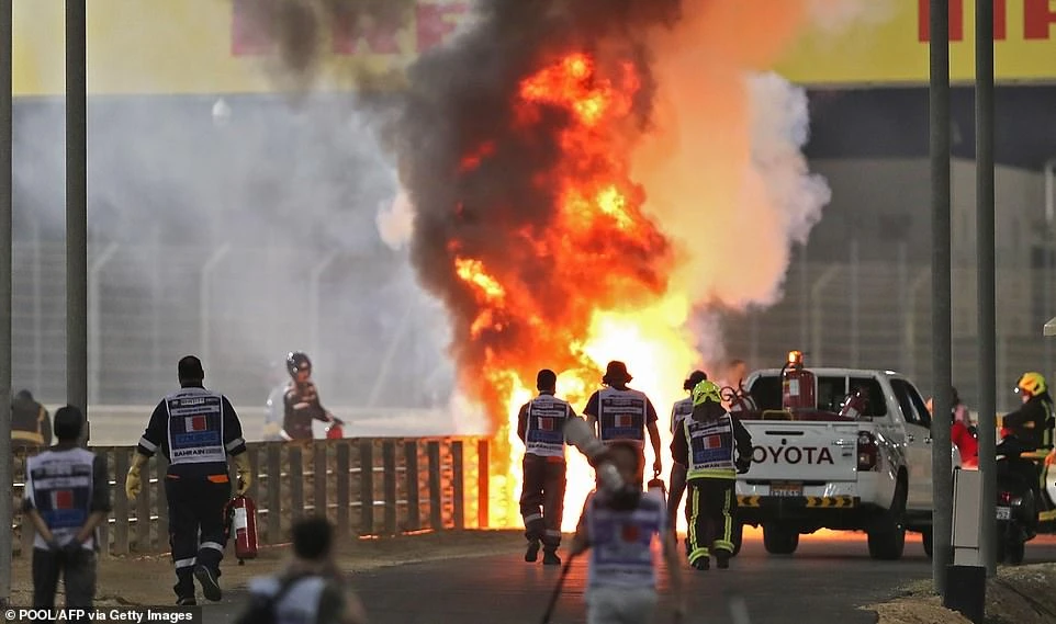 Cuối cùng thì mọi người cũng thở phào vì Grosjean vẫn còn sống. Chiếc xe F1 của Grosjean bị tách làm đôi, phần đầu xe nơi Grosjean ngồi phía trong ở khu vực rào chắn, còn phần đuôi xe bị văng ra ngoài. Bản thân Grosjean đã bị “thiêu” trong ngọn lửa 30 giây mới thoát ra ngoài được.