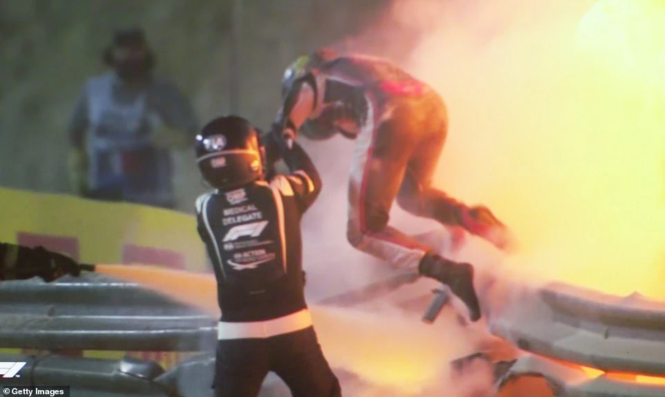 Khi chiếc xe lao vào rào chắn bốc lửa, Grosjean vẫn ở trong xe 25 giây, sau đó người ta thấy anh leo ra ngoài khi lực lượng cứu hộ đang lao đến. Tiến sĩ, bác sĩ người Anh Ian Roberts có mặt đỡ Grosjean thoát nhanh ra sau 5 giây.