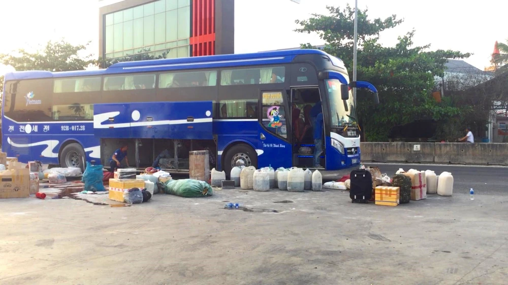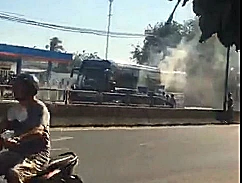 Trước đó, khoảng 16 giờ chiều 23-2 trên quốc lộ 1 đoạn qua thị trấn Lương Sơn, huyện Bắc Bình, xe khách giường nằm 92B-017.28 lưu thông hướng Nam-Bắc, khi chạy đến trước một cây xăng thì khói bốc ngùn ngụt dưới khoang hành lý.