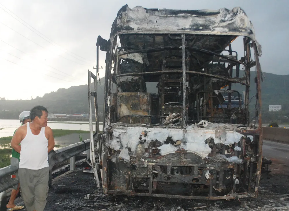 Lúc 4 giờ sáng nay (3-12), khi đang lưu thông trên quốc lộ 1, đến đoạn khu phố Long Bình, thị trấn Chí Thanh, huyện Tuy An (Phú Yên), xe khách giường nằm biển số 76B-007.42 bất ngờ bốc cháy.