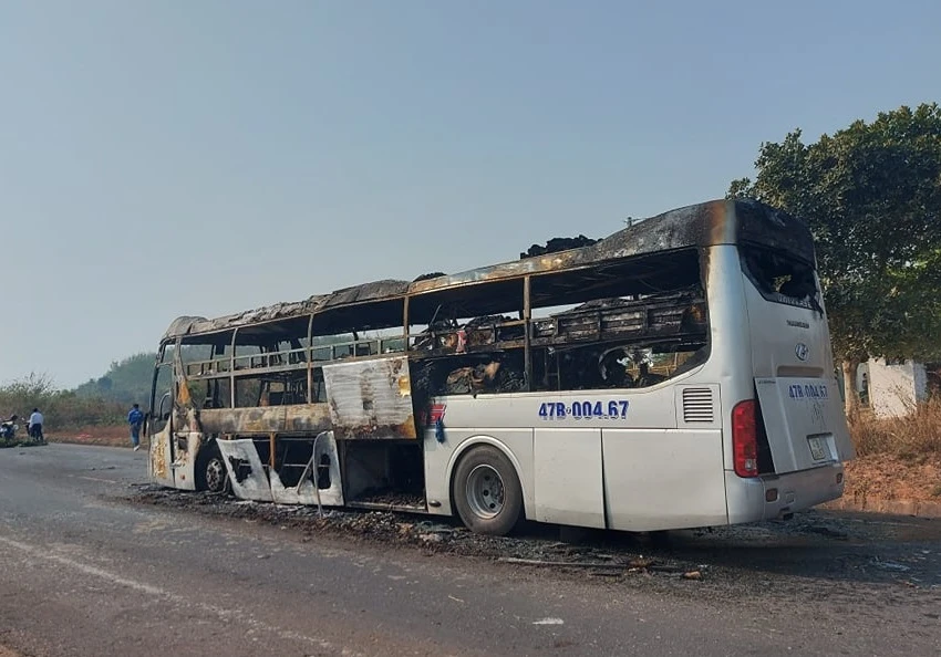 Thông tin ban đầu, xe khách giường nằm 47B- 004.67 do tài xế NVT, trú tại tỉnh Đắk Lắk điều khiển, đang lưu thông theo hướng Kon Tum – Gia Lai thì bốc cháy.