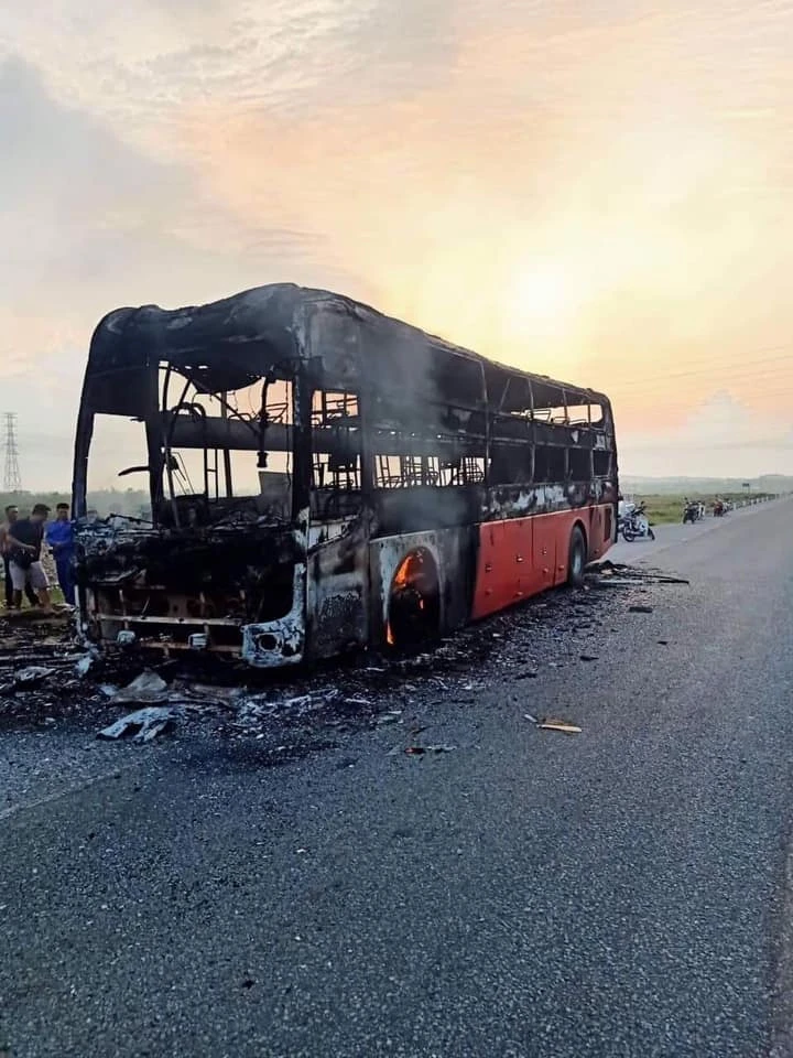 Theo đó, xe khách 37B-022.43 chạy tuyến Nghệ An - TP.HCM do Phạm Hồng Hiệp (42 tuổi, trú tại TP Vinh, Nghệ An) lái, đang chạy thì khói lửa bốc lên từ sau xe. Tài xế vội dừng xe lại và mở cửa để hành khách thoát nạn.