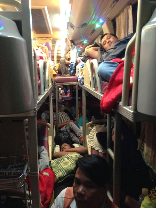 Anh T., một hành khách đi trên xe điện thoại cho đường dây nóng Báo Pháp Luật TPHCM cho biết, vợ chồng anh phải mua vé xe 1,2 triệu đồng nhưng do xe nhồi nhét quá đông, anh không thể co chân được và nhiều giờ đồng hồ phải ngồi bó gối một tư thế. Nhiều hành khách đã phản đối vì nhà xe không làm đúng cam kết nhưng nhà xe vẫn tiếp tục rước thêm khách và tiếp tục lèn số hành khách này nằm, ngồi la liệt ở hai lối đi. Khi xe dừng để hành khách đi vệ sinh, tình trạng càng hỗn loạn hơn khi mọi người đều cố chen lấn di chuyển trên các thanh giường nếu không muốn dẫm đạp nhau.