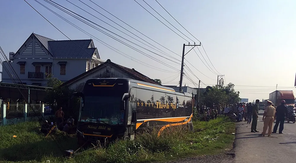 Ba xe máy bị xe khách tông, ba người lái đều nhập viện