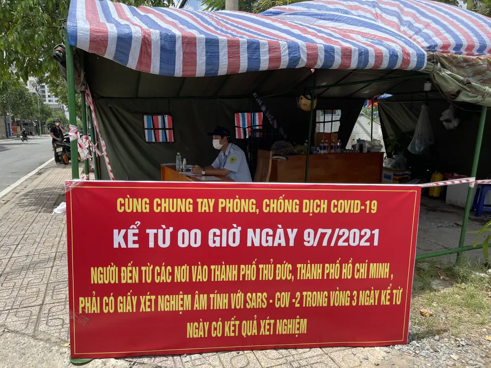 Theo lực lượng kiểm soát dịch ở chốt Đào Trinh Nhất và đường số 12 (giáp ranh TP Thủ Đức, TP.HCM với tỉnh Bình Dương), bắt đầu từ 24-7 chốt sẽ áp dụng Chỉ thị 12 của Thành ủy về tăng cường một số biện pháp tiếp tục thực hiện Chỉ thị 16 đến ngày 1-8.