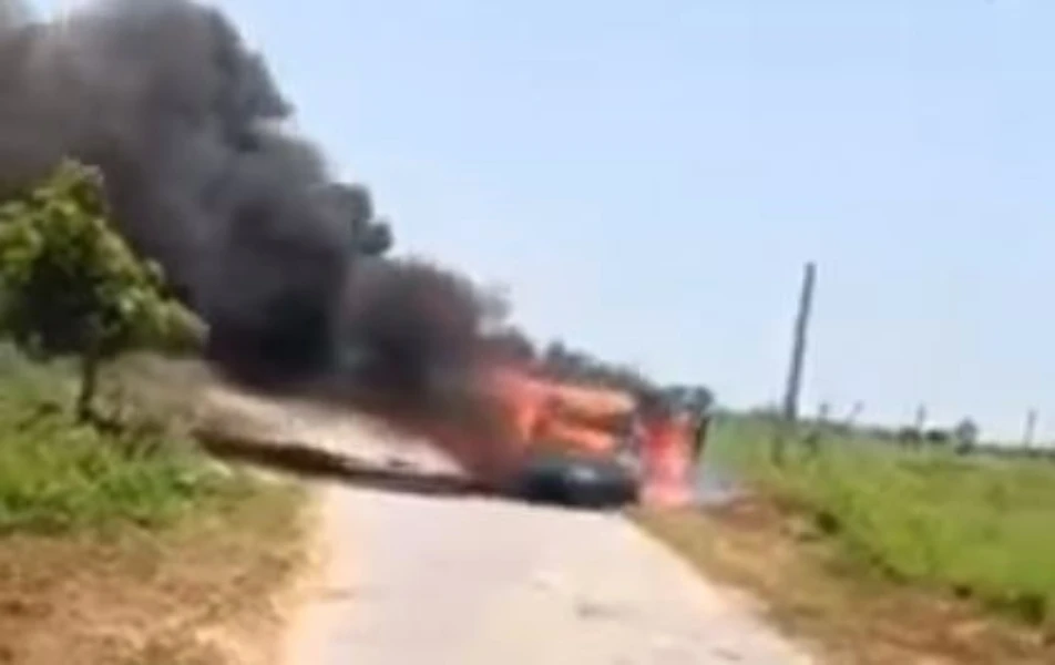 Chiều 23-5, chiếc xe ô tô năm chỗ ngồi đang chạy trên con đường thuộc xóm Tây Hồ, xã Diễn Phong (huyện Diễn Châu, Nghệ An) thì bất ngờ bốc cháy.