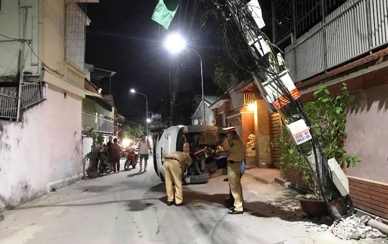 Vào thời điểm trên, chiếc xe hơi hiệu Mazda CX 5 37A-651.xx chạy theo hướng vào trung tâm TP Vinh đã bất ngờ đâm vào cột điện bên phải đường. Cú đâm mạnh khiến cột điện bị gãy nghiêng, chiếc xe chạy loạng choạng thêm khoảng 10 m rồi lật nghiêng.