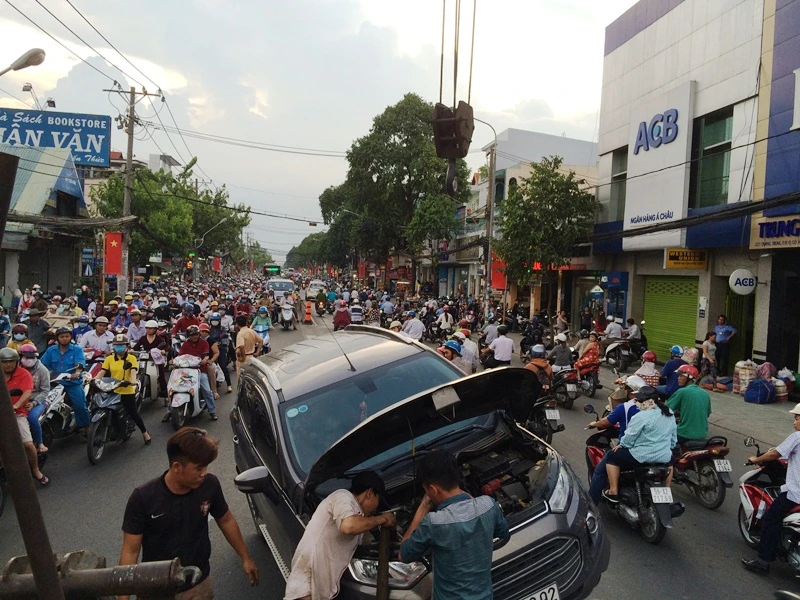 Tại hiện trường, chiếc xe bị hư hỏng nặng phần đầu, nằm chỏng chơ trên dải phân cách giữa đường. Vụ việc khiến giao thông khu vực bị ùn ứ nghiêm trọng, hàng ngàn phương tiện khó nhọc di chuyển ở cả hai làn xe kéo dài nhiều km.