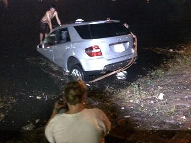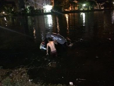 Theo các nhân chứng, vào thời điểm trên một chiếc xe hãng Mercedes ML350, biển Hà Nội sau khi lùi lại quay đầu thì xế hộp mất lái đâm trượt một gốc cây trên vỉa hè rồi lao thẳng xuống hồ Trúc Bạch.