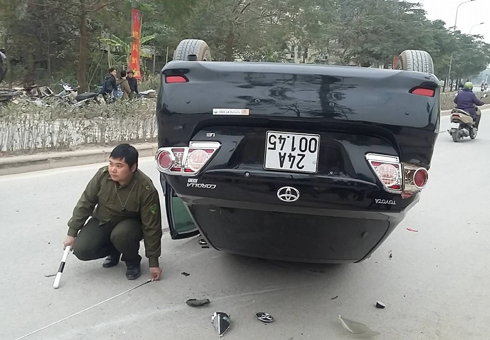Thời điểm này, ô tô Toyota Corolla biển số 24A-001.45 lưu thông đến khu vực trên thì bất ngờ mất lái.