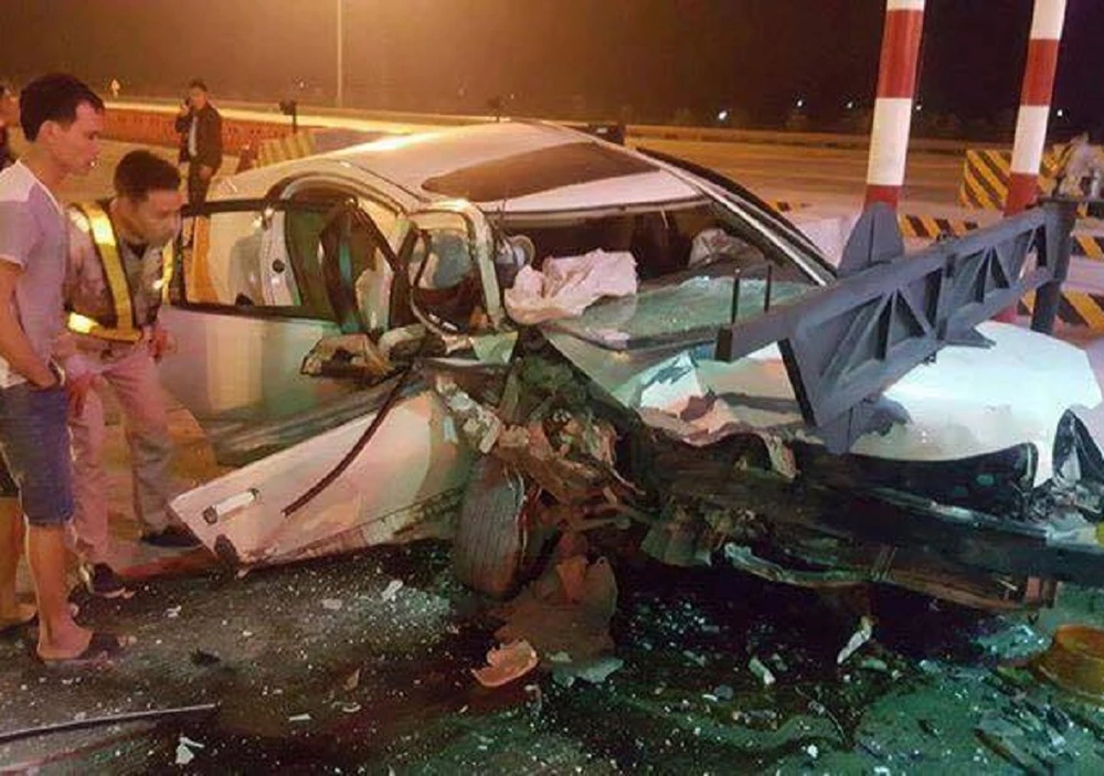 Cú va chạm cực mạnh khiến hai người trên xe bị thương nặng. Nhân viên trạm thu phí đã lập tức gọi xe cấp cứu đưa cả hai đi bệnh viện.