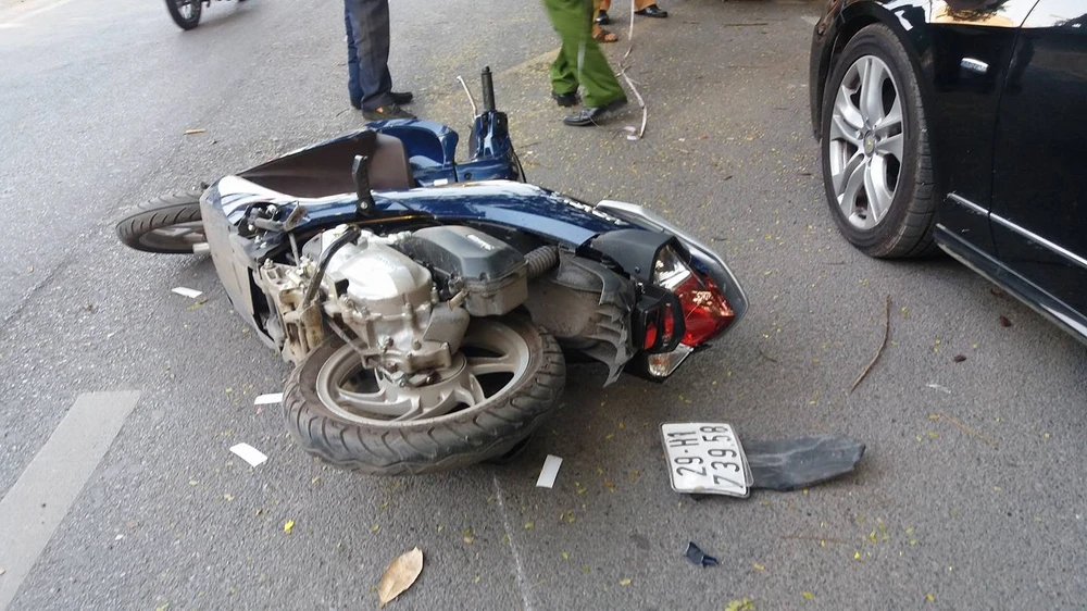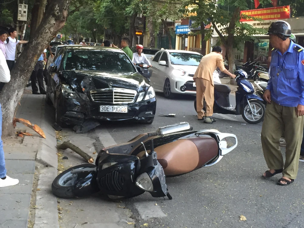 Lúc này chiếc ô tô biển sô Hà Nội, hiệu Mercedes E250 đang lưu thông trên đường Cao Bá Quát, đến đoạn trước cổng Thanh tra Chính phủ thì bất ngờ va chạm với hai xe máy hiệu Honda và SH lưu thông theo hướng cùng chiều khiến hai xe máy ngã ra đường.
