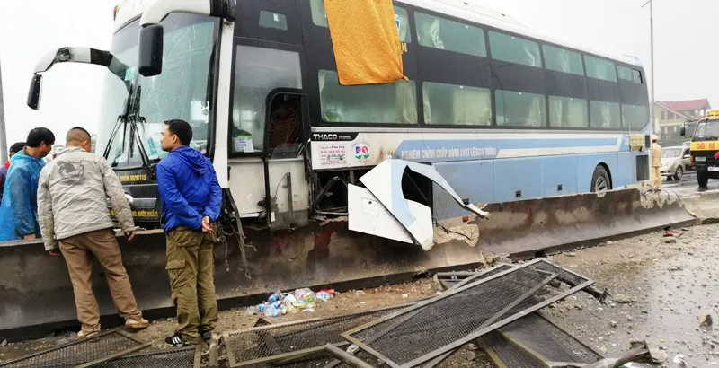Xe khách chạy sau với tốc độ nhanh đã bẻ tay lái lấn sang dải phân cách đường để tránh đâm thẳng vào xe ô tô con, nhưng đã tông trúng bên sườn trái xe ô tô con. Rất may, vụ tai nạn không có thương vong về người, nhưng hành khách hoảng sợ.