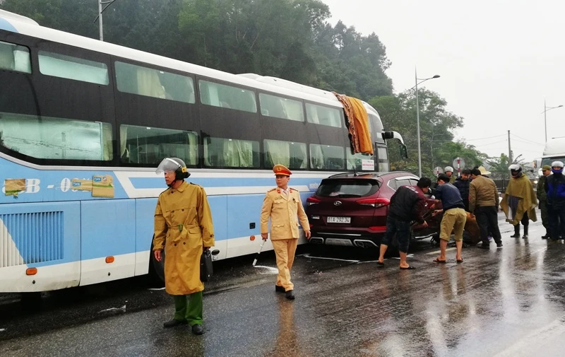 Sau khi xảy ra vụ tai nạn, lực lượng CSGT Công an huyện Nghi Xuân đã có mặt hiện trường phân luồng tránh ách tắc giao thông kéo dài và lập biên bản hiện trường làm rõ vụ tai nạn, cẩu hai chiếc xe giải phóng đường.