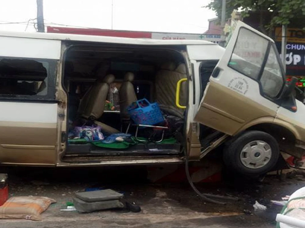 Chiếc xe bị hư hỏng nặng, nhiều người bị thương. Ảnh: FB