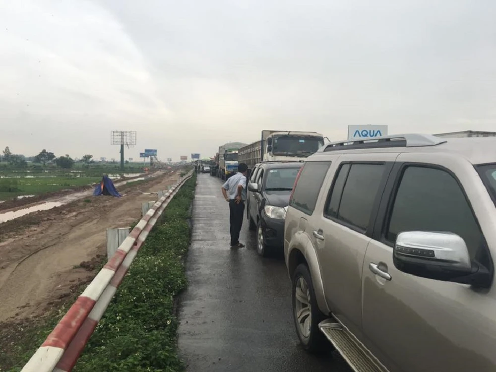 Giao thông trên tuyến đường ùn tắc hàng km. Ảnh: Nguyễn Xuân Khánh