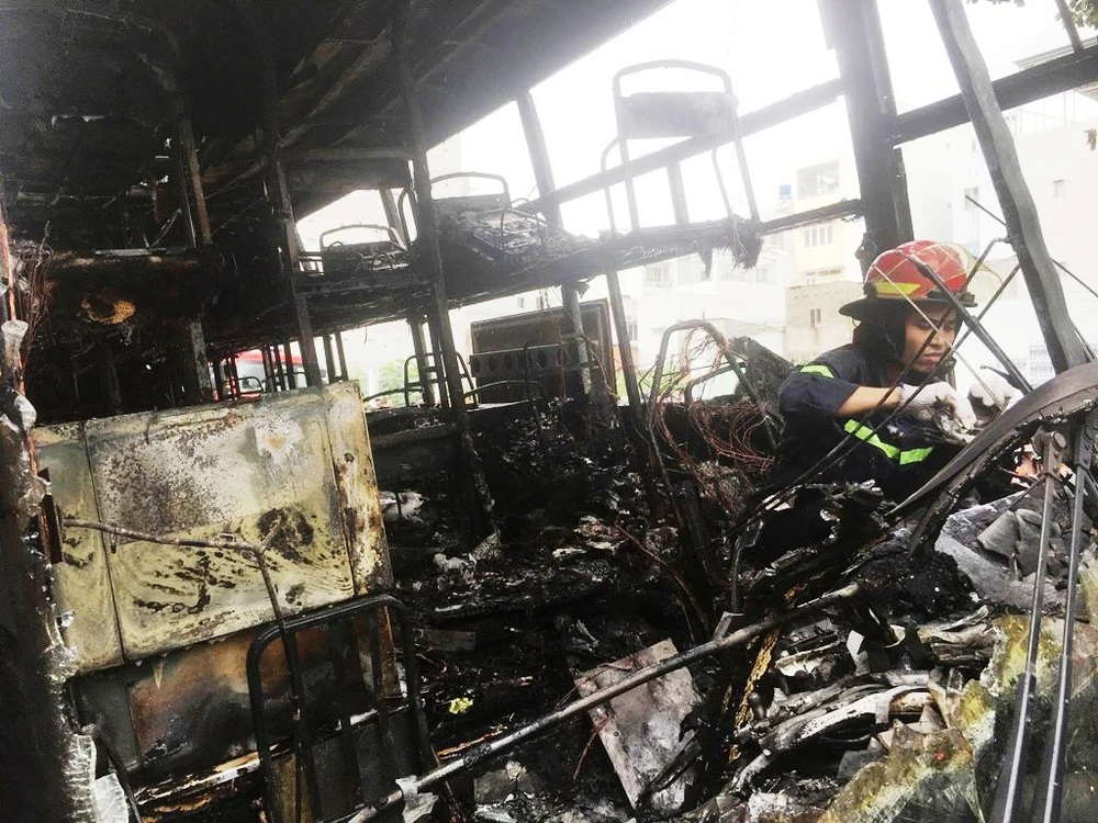 Sau khoảng 20 phút lửa được dập tắt hoàn toàn nhưng toàn bộ xe giường nằm bị cháy trơ khung. Nhiều hàng hóa, vật dụng trên xe khách cũng bị cháy đen.
