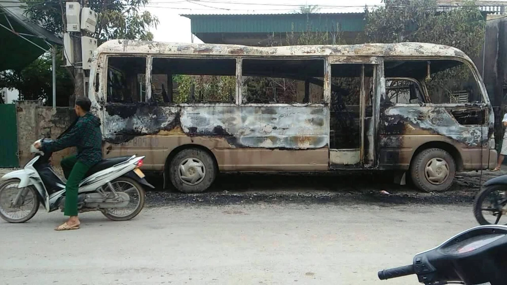 Khoảng 2 giờ sáng 31-10, người dân phát hiện lửa bốc lên từ chiếc xe khách mang BKS 37B-005.80 của anh Hồ Văn Nghĩa (trú thôn Trường Thịnh).
