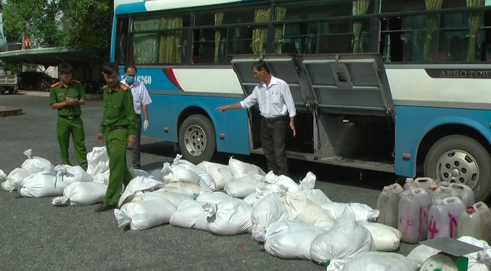 Tối 22-12, tổ công tác phát hiện xe khách 51B-162.60 do tài xế Nguyễn Tuấn Linh (49 tuổi, ngụ tỉnh Long An) điều khiển lưu thông trên địa bàn phường Mỹ Long, TP Long Xuyên có biểu hiện khả nghi nên yêu cầu dừng để kiểm tra.
