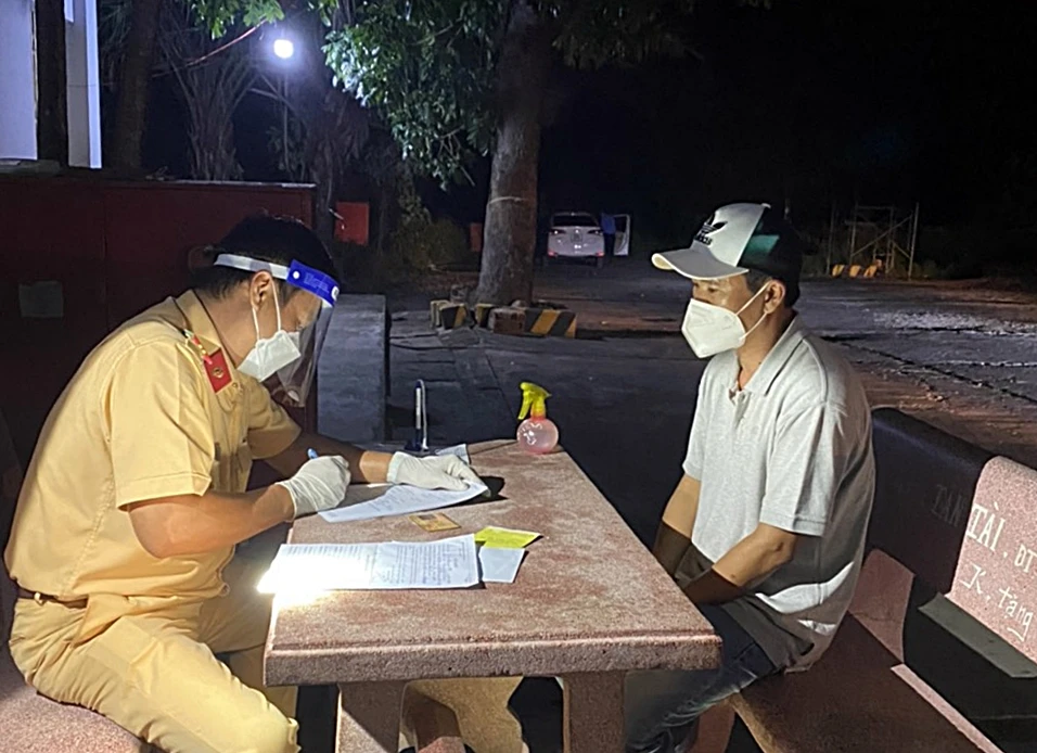 Phát hiện trên xe có nhiều người đi từ vùng dịch, Trạm CSGT Hàm Tân phối hợp với Chốt kiểm soát COVID-19 số 2 đã yêu cầu lái xe ký cam kết, quay đầu xe trở về lại TPHCM.