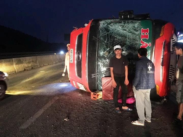 Vào thời điểm trên, xe khách mang BSK 36B-024.96 của nhà xe Hải Hà do tài xế Hoàng Duy Đồng (30 tuổi, trú xã Quảng Thái, huyện Quảng Xương, Thanh Hóa) chở khoảng 40 hành khách từ TP.HCM về Thanh Hóa. Khi đi vào khúc cua gần cầu Cấm trên quốc lộ 1A thì xe bị lật nghiêng khiến nhiều hành khách hoảng loạn.