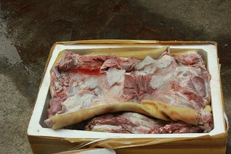 Một thùng xốp chứa đầy thịt thối.