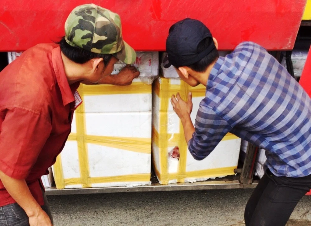 Trên bao bì của số thịt trên ghi được đóng gói từ một công ty thực phẩm ở trên địa bàn quận Thủ Đức (TP.HCM). Bên ngoài thùng xốp ghi số điện thoại người nhận là người phụ nữ chuyên nhập hàng của một resort 5 sao ở Đà Nẵng.