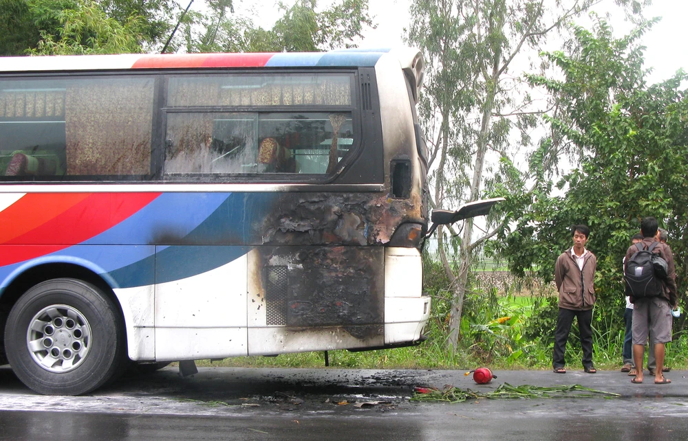 Phần sau chiếc xe khách bị hư hỏng nặng sau khi đột ngột phát cháy.