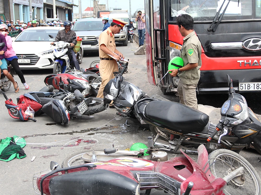 Thông tin ban đầu, trưa 24-12, dòng xe đang dừng chờ đèn đỏ trên quốc lộ 1 đoạn trước cổng khu công nghiệp Vĩnh Lộc (phường Bình Hưng Hoà B, quận Bình Tân). Bất ngờ, xe khách loại 46 chỗ, biển số 51B-183.10 lưu thông trên quốc lộ 1 hướng từ quận 12 về huyện Bình Chánh va chạm với một xe tải lưu thông cùng chiều. Cú va chạm khiến xe khách mất lái, tông văng dải phân cách và lao vào dòng xe máy đang đứng chờ đèn đỏ gần đó.