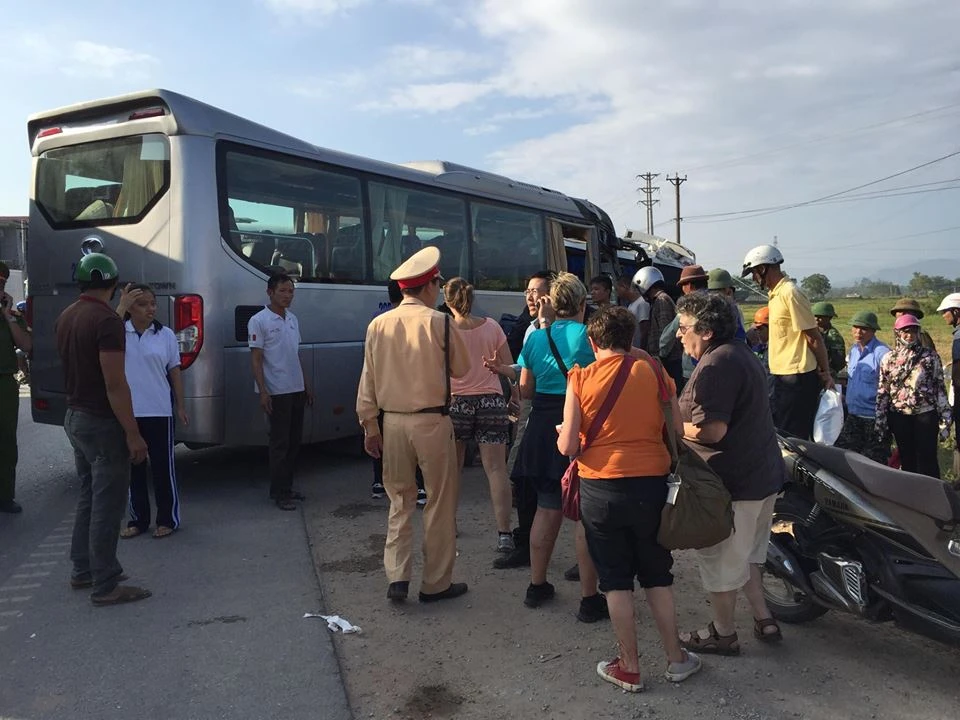 Tại hiện trường, phần đầu của cả xe khách và xe du lịch đều bị hư hỏng nặng. Một du khách nước ngoài bị thương đã được các lực lượng chức năng gọi xe cấp cứu. Nhiều hành khách người nước ngoài khác bị thương nhẹ, xây xát ở vùng mặt và chân tay, tâm trạng rất hoảng loạn. Hành khách trên xe khách cũng trong trạng thái hoảng loạn tương tự.