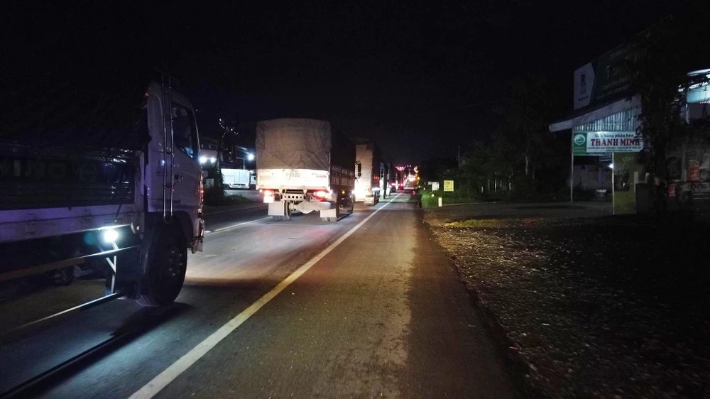Tại hiện trường nhiều thùng nước mắm trên thùng xe tải rơi xuống đường choán hết lòng đường khiến kẹt xe nghiêm trọng dài khoảng 5 km.