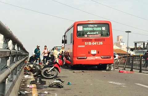 Khoảng 7 giờ sáng 9-9, xe khách thuộc nhà xe Phương Trang (biển số 51B-041.26) lưu thông trên đường Hồng Bàng hướng từ quận 5 về vòng xoay Phú Lâm. Khi lên cầu vượt vòng xoay Cây Gõ (giáp ranh quận 6 và quận 11, TP.HCM), xe lấn trái liên tục rồi tông thẳng vào hàng loạt xe máy đang lưu thông chiều ngược lại. Tổng cộng có chín người bị thương, trong đó tám người được đưa vào BV Chợ Rẫy, một trẻ nhỏ còn lại được tài xế đón xe ôm đưa đi cấp cứu tại BV Nhi đồng 1.