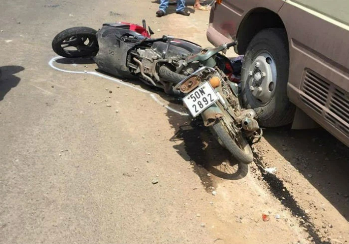 Chiếc xe khách tiếp tục lao đi tông tiếp vào xe máy do anh Trần Văn Hùng (26 tuổi) chở theo chị Nguyễn Thị Ánh Nguyệt (36 tuổi, cùng ngụ Bình Thuận) đang chạy cùng chiều, kéo hai xe máy và người đi khoảng 15 m rồi tông vào cục bê tông bên đường mới dừng lại.