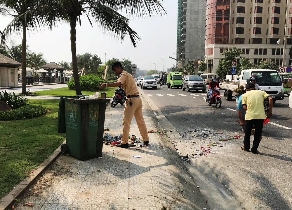 CSGT quận Ngũ Hành Sơn phối hợp cùng các đơn vị liên quan phong tỏa hiện trường, điều tiết giao thông và làm rõ nguyên nhân vụ tai nạn.