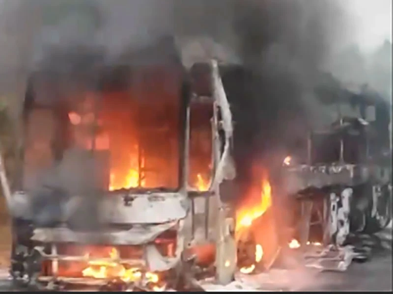 "Chiếc xe khách giường nằm cháy dữ dội kèm khói đen. Chiếc xe này đã cháy từ trước đó, khi tôi đến thì không thấy hành khách. Chiếc xe vẫn tiếp tục cháy và chỉ còn trơ bộ khung. Mặc dù đã lâu nhưng không thấy lực lượng chức năng đến hiện trường và đường bắt đầu kẹt” – người này nói.